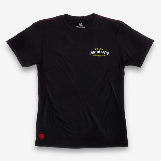 This tee commemorates the February 28, 2026 race during the 85th Anniversary of Daytona Bike Week, marking the Sons of Speed’s 10th season at the New Smyrna Speedway.